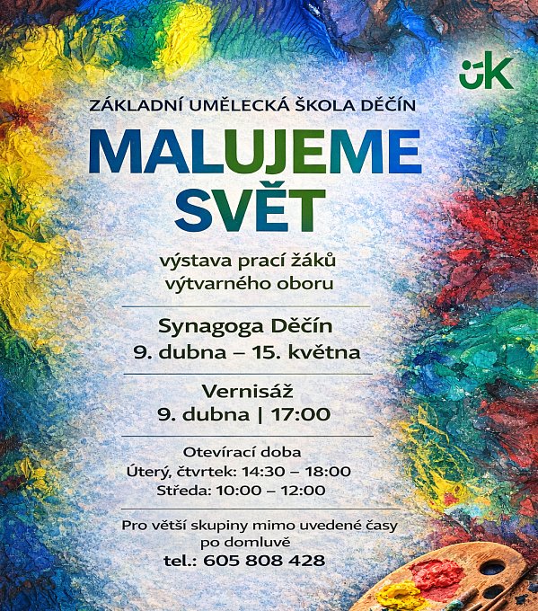 Žáci výtvarného oboru děčínské Základní umělecké školy budou vystavovat své práce v Synagoze až do 15. května. Výstavu zahájí vernisáž, na které zahrají žáci pana učitele Alexandra Bucha.
